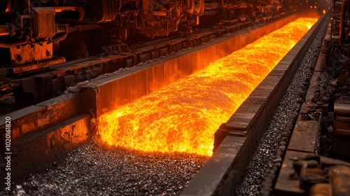 Molten metal flows through a steel production facility.