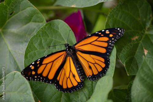 monarch butterfly on green leaf