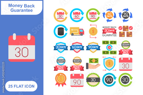 Money Back Guarantee Icon Set, Collection of money back guarantee icon set