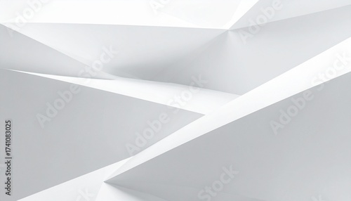 Monochromatic abstract composition of angular geometric shapes with triangular and polygonal facets, rendered in white and light gray—clean, dimensional, and modern.