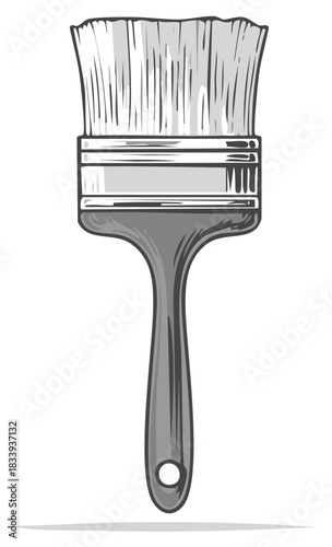 Monochromatic Illustration of Paint Brush, Tool for Painting Projects and Home Improvement
