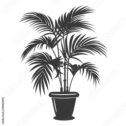 Monochrome Areca Palm: Potted Plant Silhouette, Interior Decor Element.