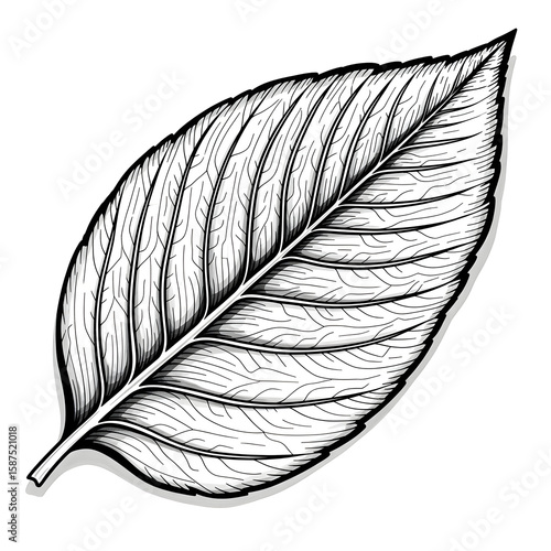 Monochrome botanical illustration of single leaf