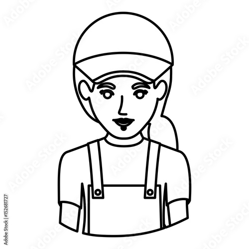 monochrome contour half body of delivery woman vector illustration