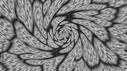 Monochrome fractal spiral pattern with dynamic lines and hypnotic design
