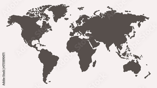 Monochrome World Map in Simple Vector Style