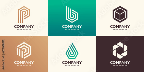 monogram letter and hexagon with stripe concept logo design template.