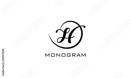 Monogram. Typographic logo with capital letter F. Icon lettering style with decorative swirl in black isolated on light background.