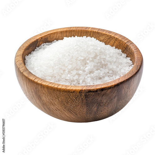 Monosodium glutamate sitting in a wood bowl against a Transparent background for culinary use, monosodium glutamate in wood bowlisolated on PNG background