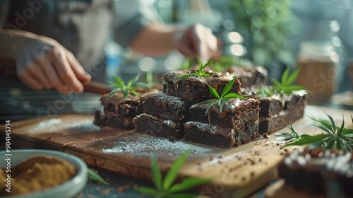 Monotone Silhouette of Chef Preparing Cannabis-Infused Brownies in a Vibrant Kitchen