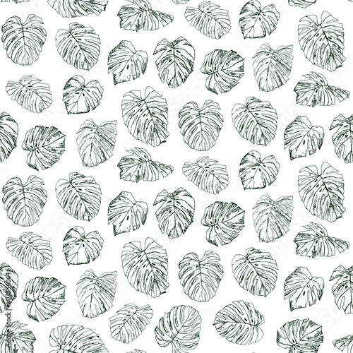 Monstera Palm leaves vector seamless pattern