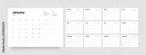 Monthly calendar layout for 2026 year. Diary planner for 2026 year. Week Starts on Monday.