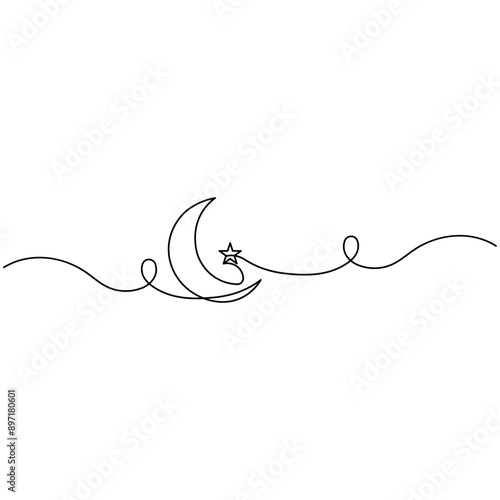Moon single line art, continuous one line drawing of Isolated outline vector art