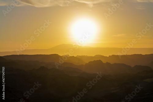 Moon valley Valle de la Luna famous desert landscape in Chile. Atacama desert tourist sight Valle de la Luna in San Pedro de Atacama stunning dry soil arid landscape red rocks and sand under blue sky