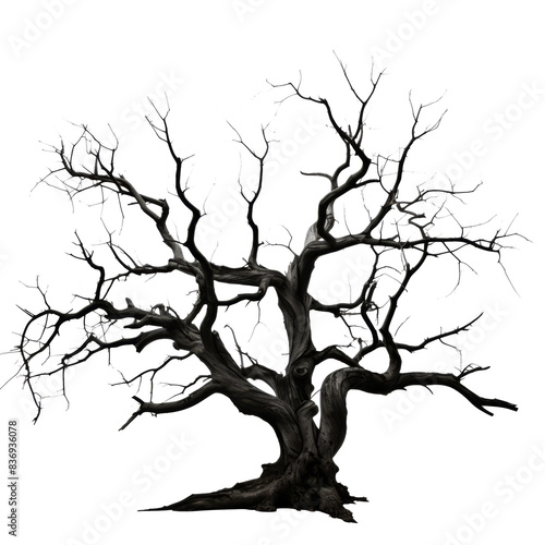 Moonlit Silence: A Stark Silhouette of a Lone Dead Tree Against a Starry Night Sky