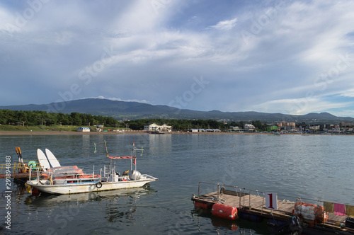 moored boat and pier near Iho Tewoo Beach on Jeju island