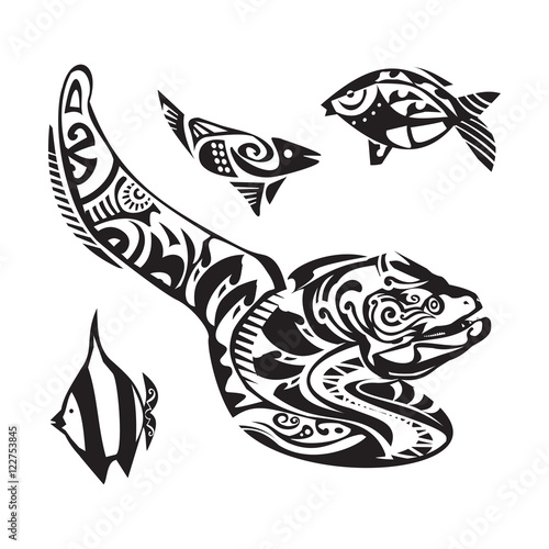 Moray tattoo in Maori style. Vector illustration EPS10