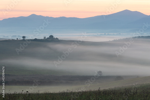Morning mist at Ondrasova village, Slovakia.
