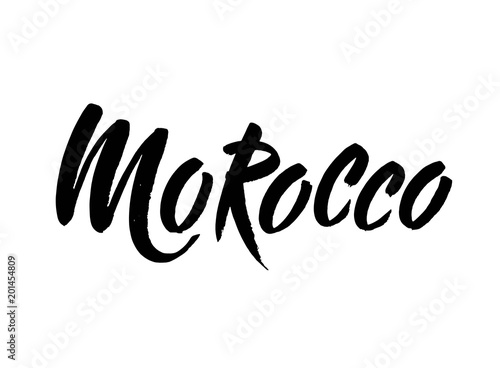 Morocco hand drawn ink brush lettering of the country. Morocco hand drawn vector illustration. Modern brush ink. Isolated on white background.
