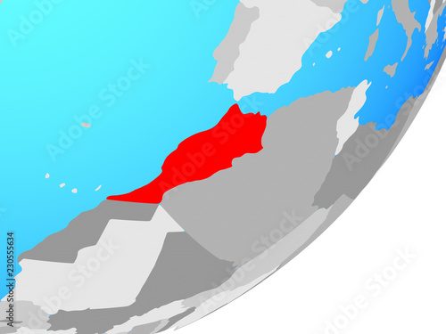 Morocco on blue political globe.
