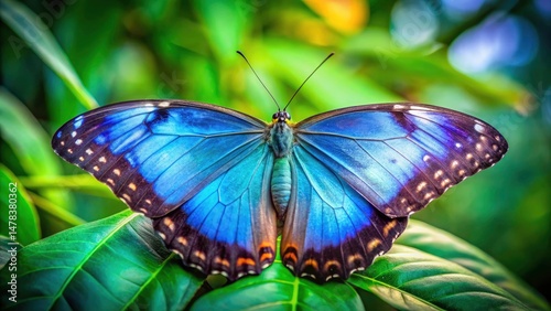 Morpho Absoloni Butterfly, Closed Wings, Green Leaf, Bokeh, Macro Photography, Insect, Nature, Wildlife