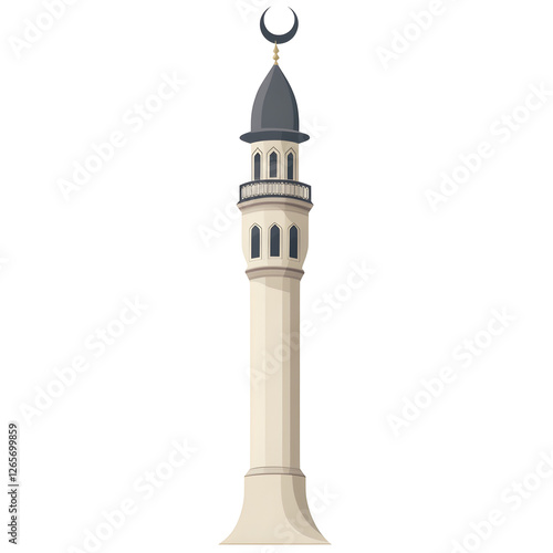 Mosque Minaret with Crescent Moon, transparent background minimalistic illustration