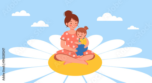 Mother and child sitting on flower.