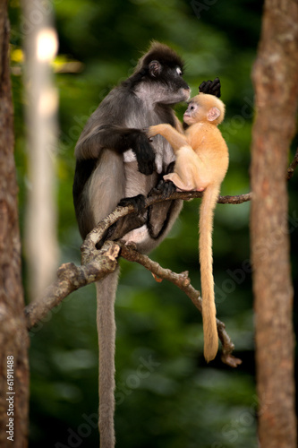 Mother and son monkeys are mischievous ( Presbytis obscura reid