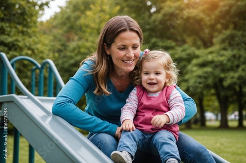 Mother with daughter (2-3) on slide