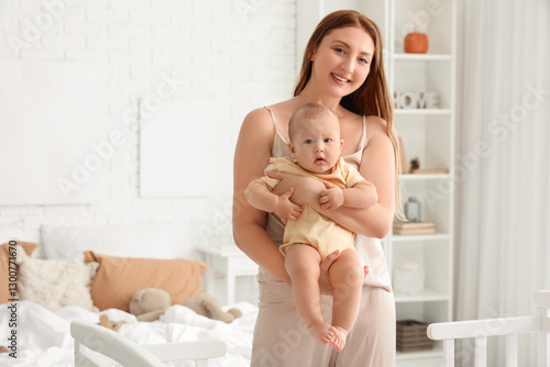 Mother with her little baby in bedroom