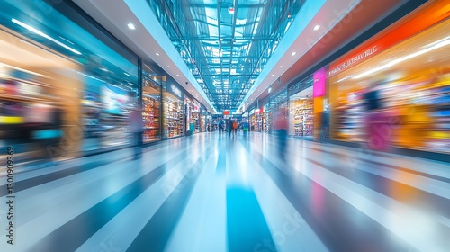 Motion blur of shoppers in a retail store, representing the fluctuating patterns of sales forecasting and consumer behavior analysis, dynamic, modern, and energetic visual style
