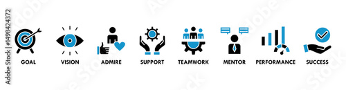 Motivation banner web icon vector illustration concept with icon of goal, vision, admire, support, teamwork, mentor, performance, and success
