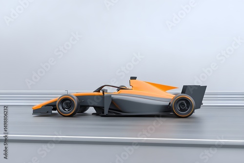 Motor sports competitive team racing, fast moving generic race car racing down the track with motion blur, 3d rendering, highlighting the sleek design and speed of the car, dramatic lighting,