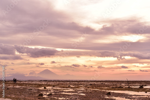 "Mount Agung" volcano at sunset, sea view of Bali island from "Gili Trawangan", "Gili Islands", Indonesia