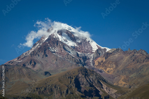 Mount Kazbek view from Stepantsminda in Georgia