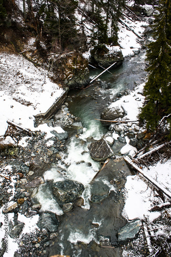 mountain forest river in winter