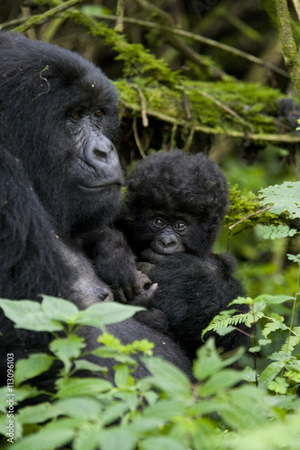 Mountain gorilla (Gorilla gorilla beringei) with her baby, Kongo, Rwanda