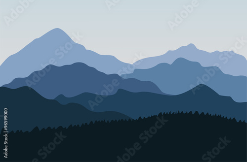 Mountain landscape in blue colors. Outdoor background.
