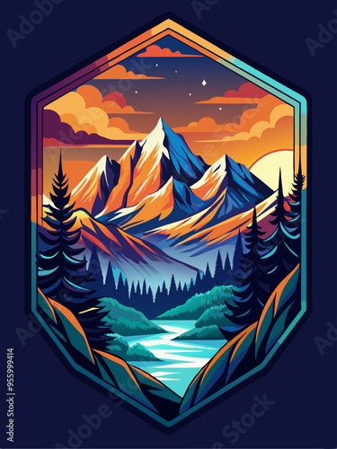 Mountain Landscape with Sunset and River