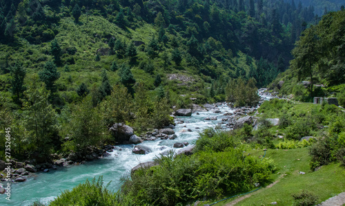 mountain river in the forest in Manali, India