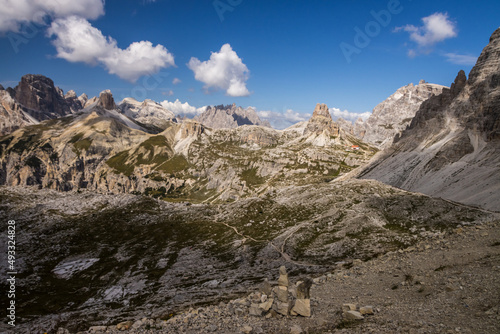 Mountain trail Tre Cime di Lavaredo in Dolomites in Italy