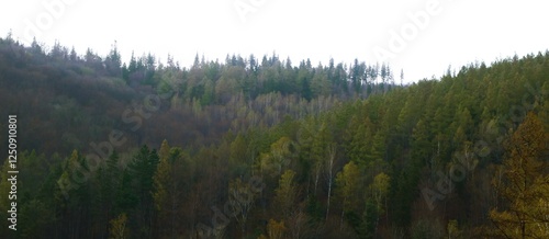 Mountainous terrain. Wild forest. A tranquil, breathtaking setting. Detailed background. Postcard. Cover. Picture.