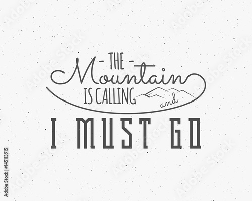 Mountains are calling lettering, adventure elements Outdoor inspiration typography concept. Motivation quote template Best for Winter sport flyers brochures, t shirts. vintage monochrome design