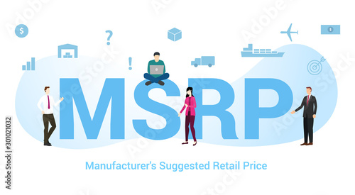 msrp manufacturers suggested retail price concept with big word or text and team people with modern flat style - vector