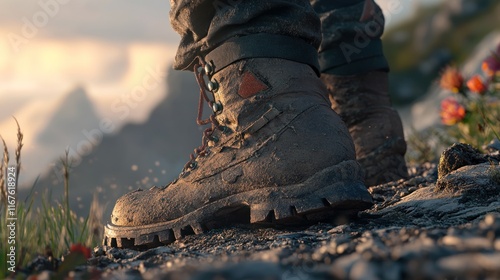 Muddy Boots on a Mountain Path: A Hiking Adventure at Sunrise