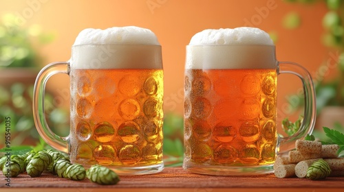 Mug beer. Full glasses of mug beer. Oktoberfest beer festival in Germany