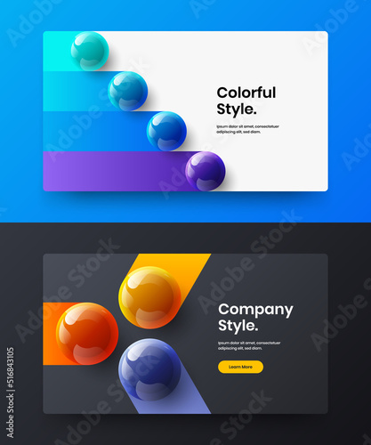 Multicolored 3D balls corporate identity illustration bundle. Trendy book cover design vector concept set.