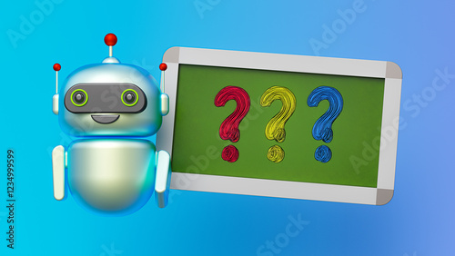 Multicolored and drawn question marks representing discussion, conversation and communication. Ai robot help and chalkboard background