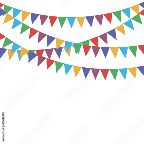 Multicolored bright buntings flags garlands isolated on white background