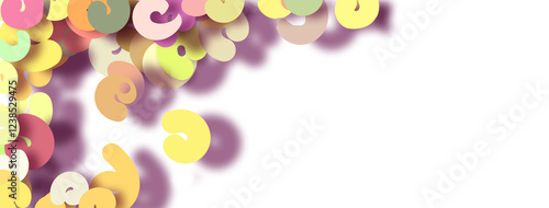 Multicolored doodles isolated with shadow on transparent background